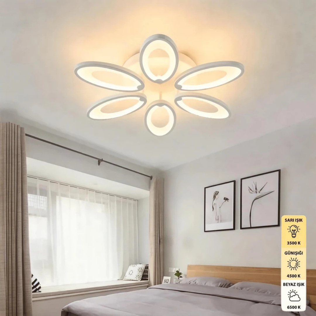 Edna 6'lı Beyaz Plafonyer Lüks Modern 3 Renk Ledli Avize