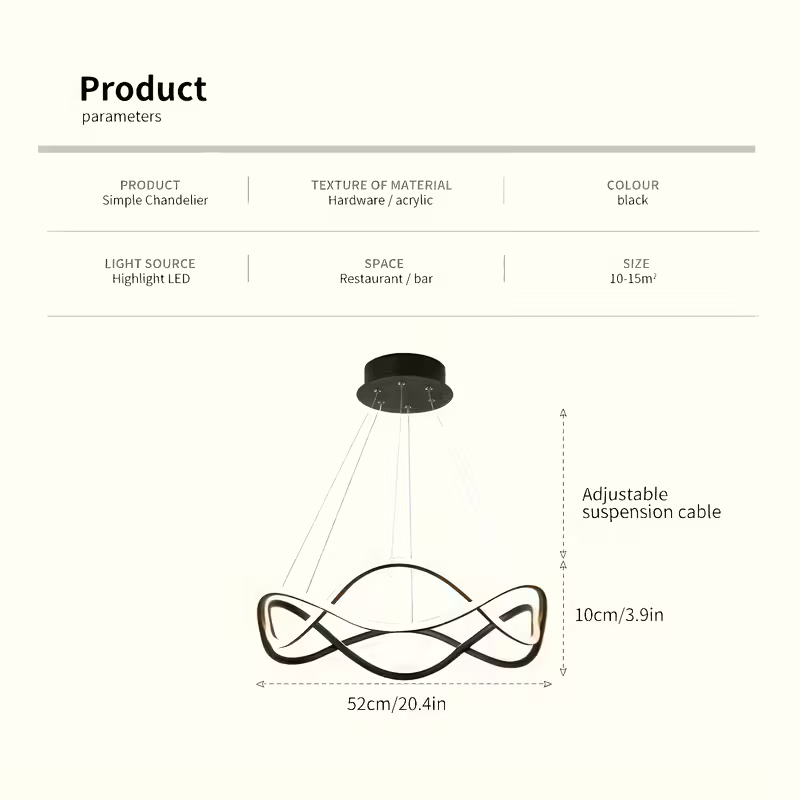 Ezgi Siyah Modern Ultra Süper Beyaz Ledli Avize