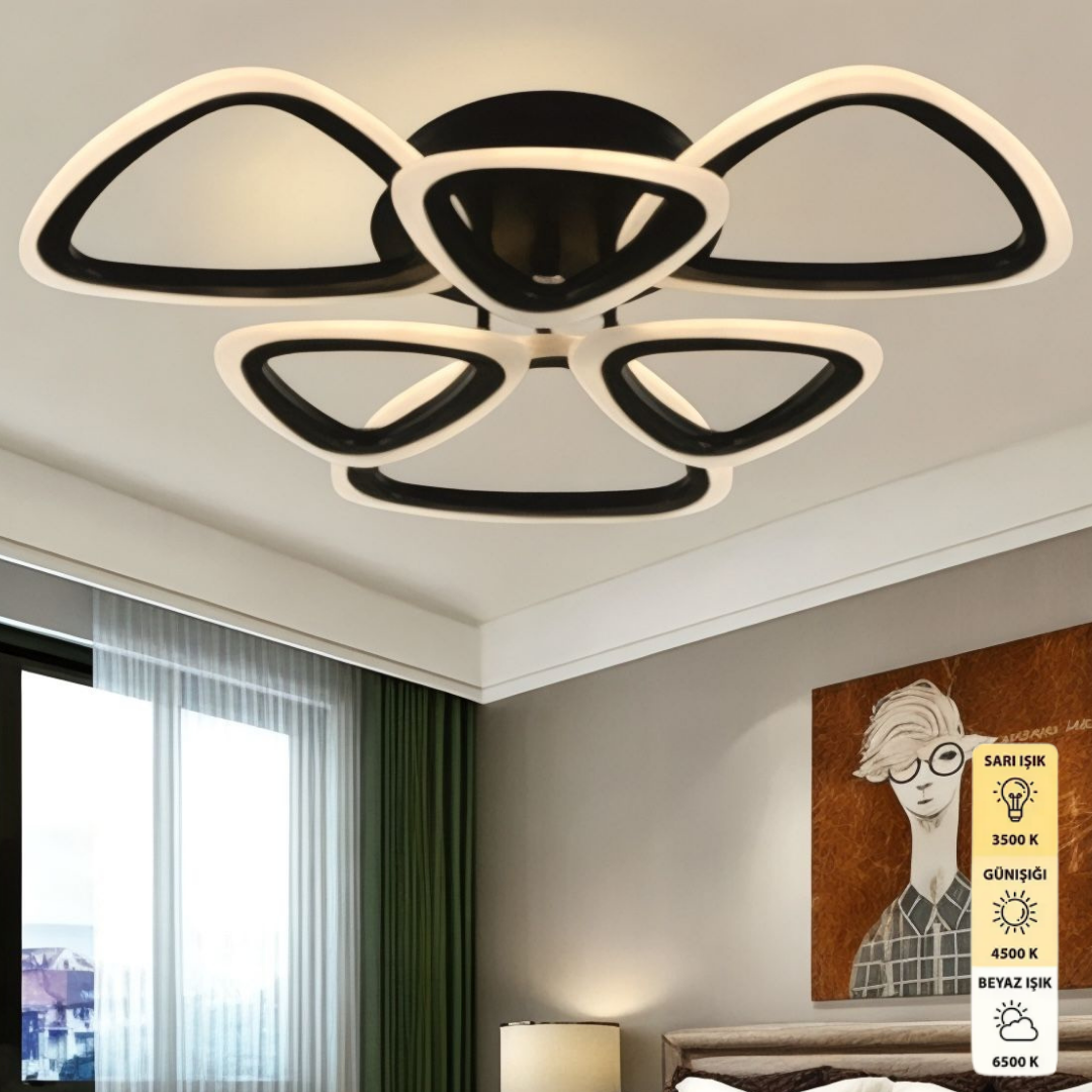 Ophelia 6'lı Siyah Plafonyer Modern 3 Renk Ledli Avize