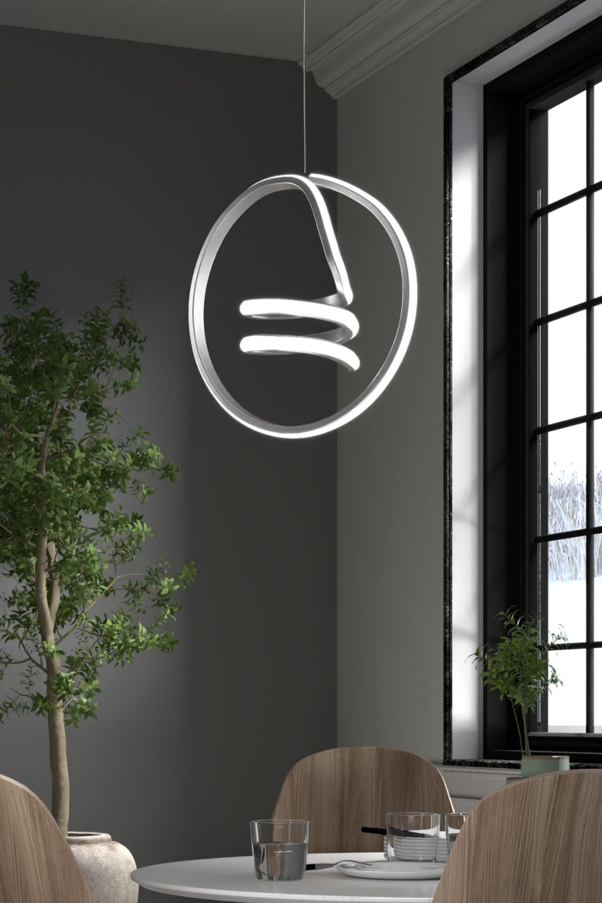 Venita Gri Tekli Sarkıt Led Beyaz Işık Ultra Ledli Salon Mutfak Oda Hol Ledli Avize
